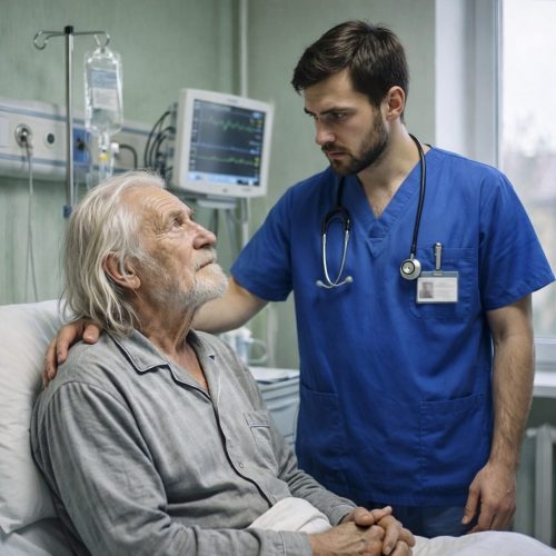 Ветхий, покосившийся будинок, до якого вони підійшли, нагадував примару минулого життя. На продавленому дивані, укритий якимось ганчір’ям, лежав літній чоловік. Він стискав живіт руками, і тихі, приглушені стогони виривалися з пересохлих губ. Лоб його був вкритий дрібними краплями холодного поту, що світився в напівтемряві.