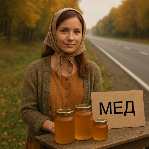Слово є слово. Через пів години вони вже мчали трасою. Серце Максима калатало від суміші сорому та азарту. За кілька кілометрів від дачі вони помітили самотню постать біля столика з медом. Невисока жінка в ситцевій сукні, з хусткою, зав’язаною так туго, що майже не було видно обличчя.