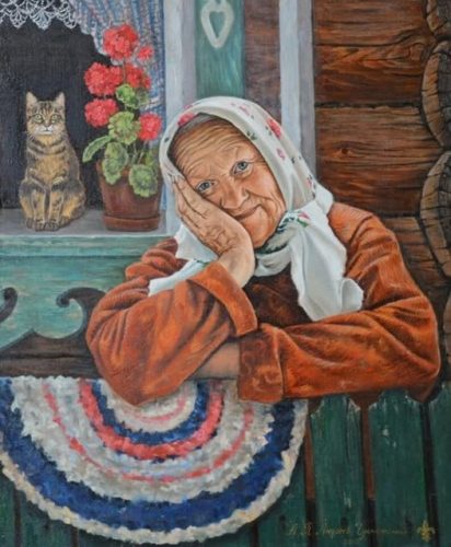 Анна Павлівна строгала лучину, а сльози так і котилися, з морщинистого обличчя, падали на струнку шию, що схожа на гусину, й потрапляли на виснажену грудь.
