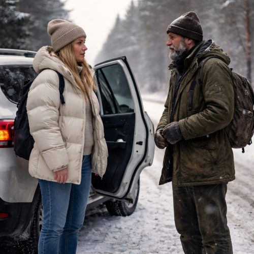 Аліна вагалася. Вагітній жінці не варто зупинятися вночі на порожній трасі заради незнайомця. Але серце її стислося. Вона згадала, як сама колись стояла на цій же дорозі — без грошей, без дому, з пакетом у руках і страхом в очах. Тоді ніхто не зупинився.